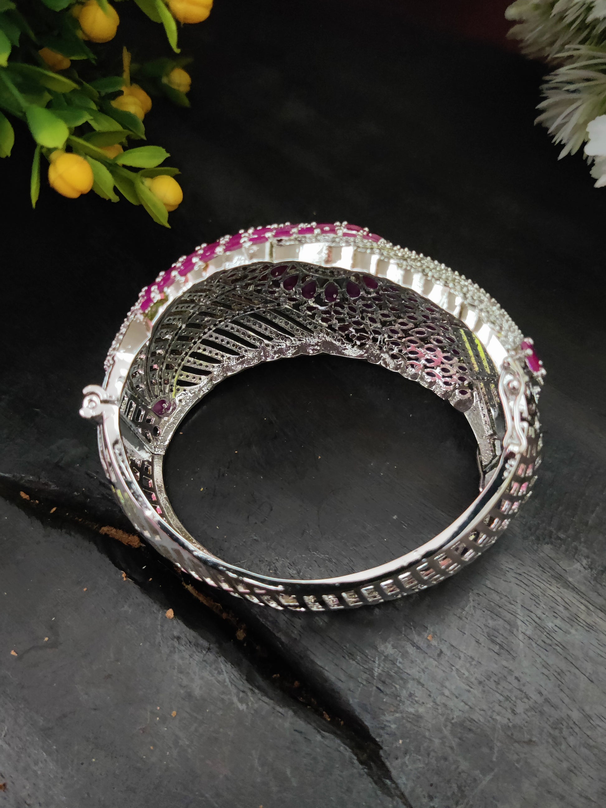सिल्वर टोन्ड और सफ़ेद कड़ा ब्रेसलेट 57 ग्राम