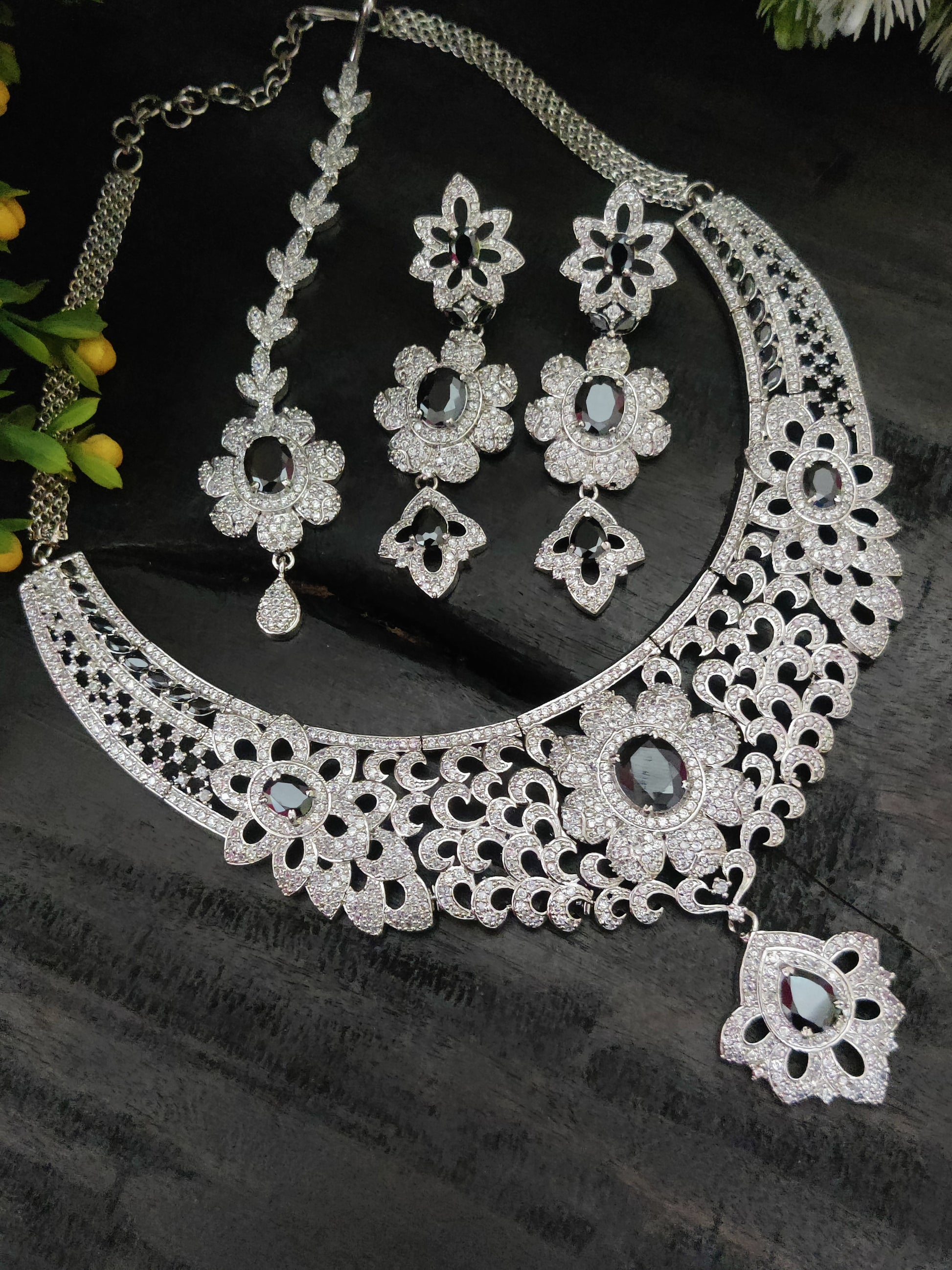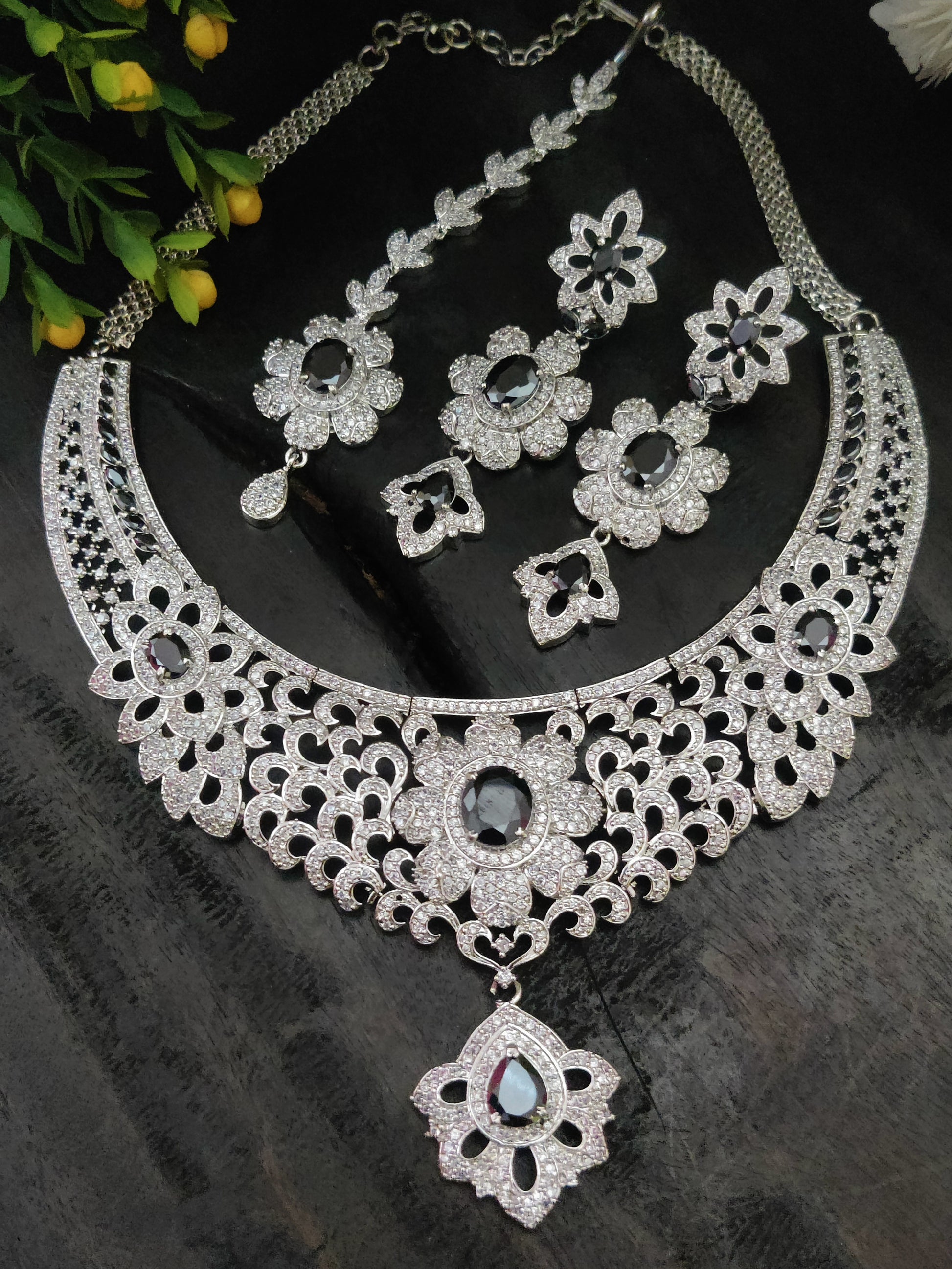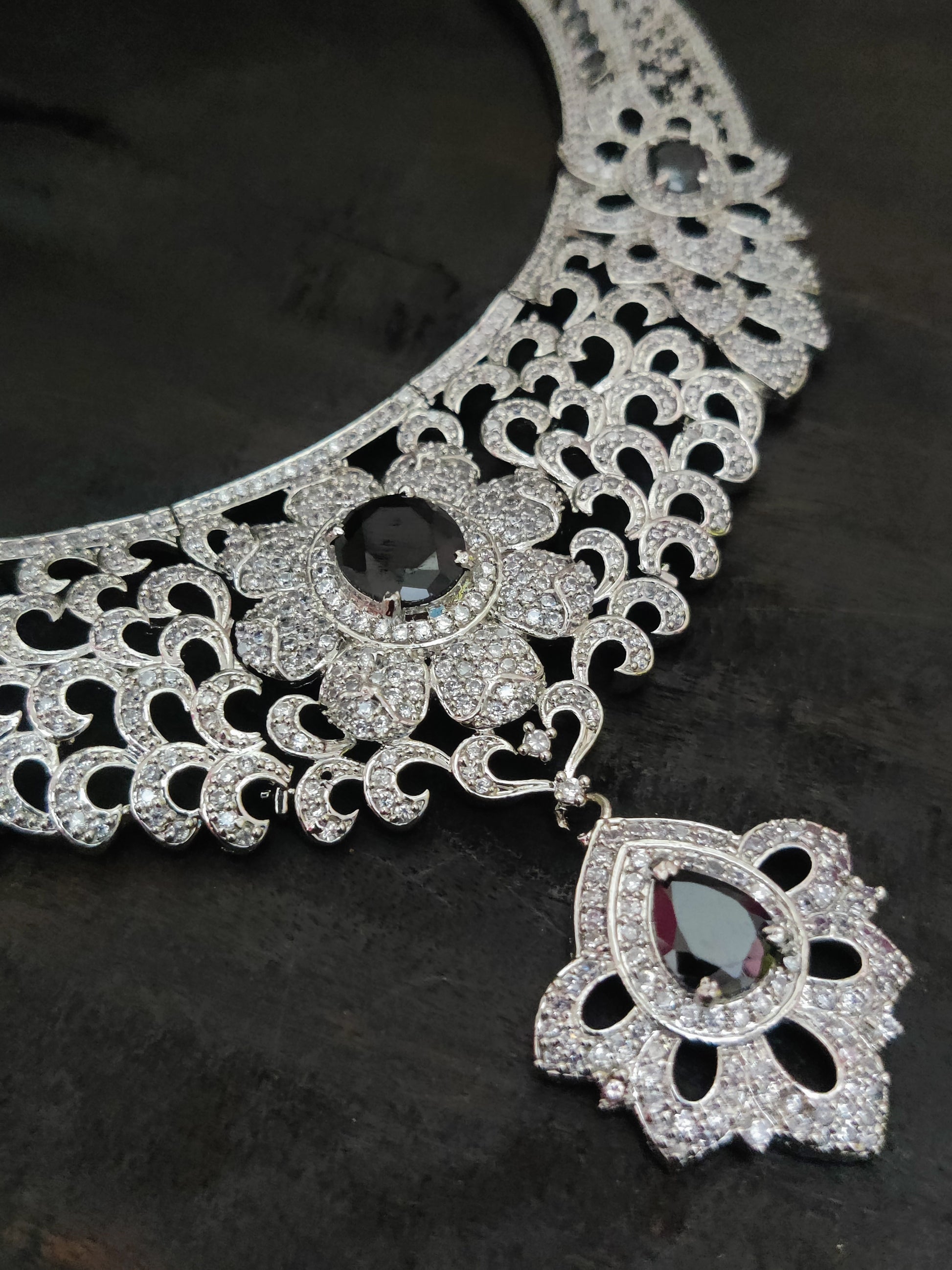 सिल्वर-टोन्ड और ब्लैक कलर ज़िरकॉन चोकर